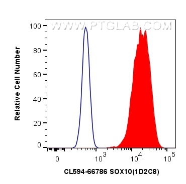 The SOX10 antibody from Proteintech is a mouse monoclonal antibody to a recombinant protein of human SOX10. This antibody recognizes human, mouse, rat antigen. The SOX10 antibody has been validated for the following applications: IF-P, FC (Intra) analysis. This antibody is coraliteR594.