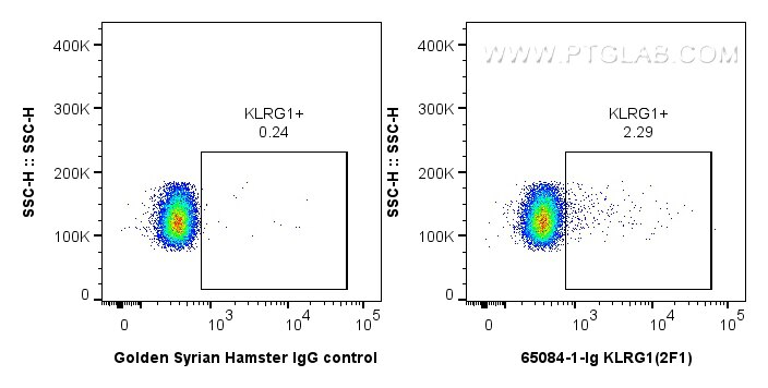 The KLRG1 antibody from Proteintech is a golden syrian hamster monoclonal antibody to a n/a of mouse KLRG1. This antibody recognizes mouse antigen. The KLRG1 antibody has been validated for the following applications: FC analysis.