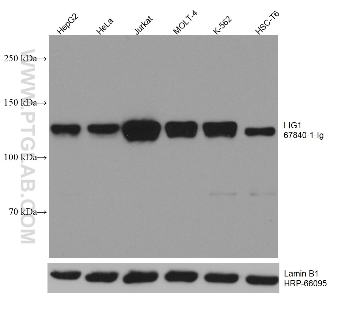 The LIG1 antibody from Proteintech is a mouse monoclonal antibody to a recombinant protein of human LIG1. This antibody recognizes human, mouse, rat antigen. The LIG1 antibody has been validated for the following applications: WB, ELISA analysis.