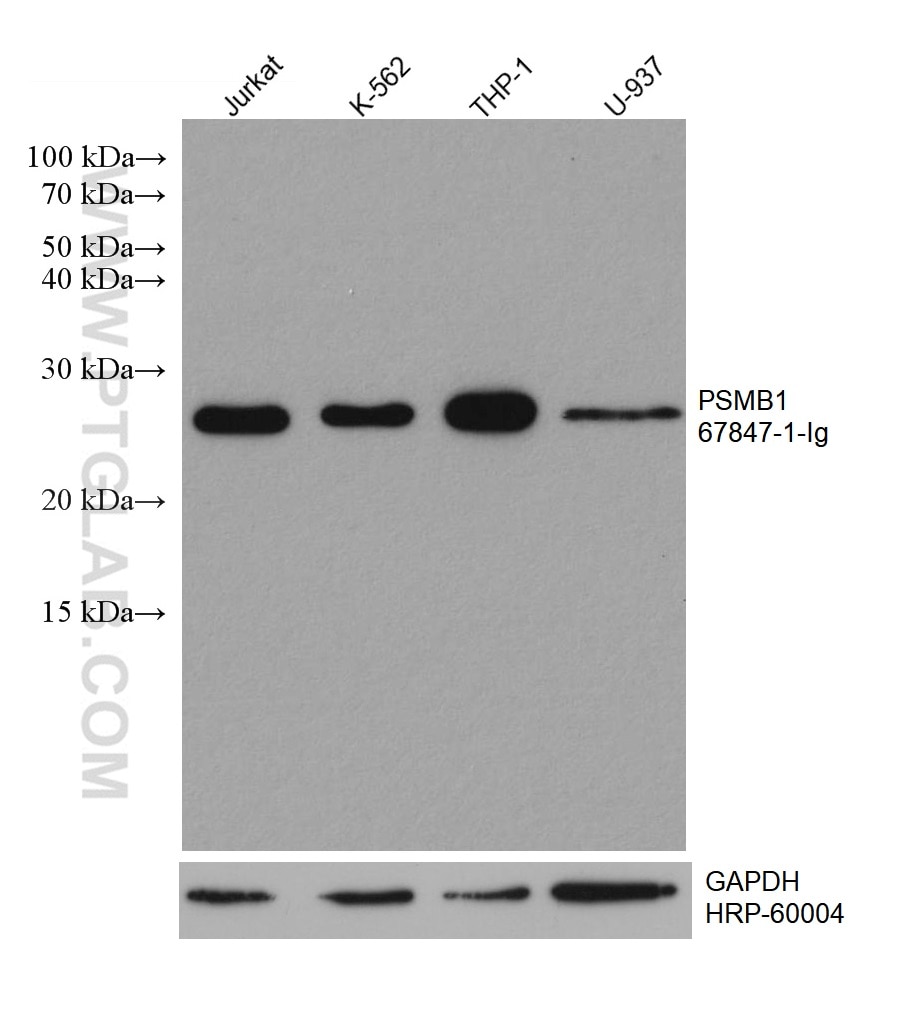 The PSMB1 antibody from Proteintech is a mouse monoclonal antibody to a recombinant protein of human PSMB1. This antibody recognizes human antigen. The PSMB1 antibody has been validated for the following applications: WB, IHC, IF/ICC, FC (Intra), ELISA analysis.