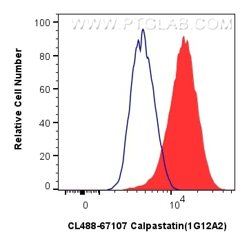 The Calpastatin antibody from Proteintech is a mouse monoclonal antibody to a recombinant protein of human Calpastatin. This antibody recognizes human antigen. The Calpastatin antibody has been validated for the following applications: IF/ICC, FC (Intra) analysis. This antibody is coraliteR plus 488.
