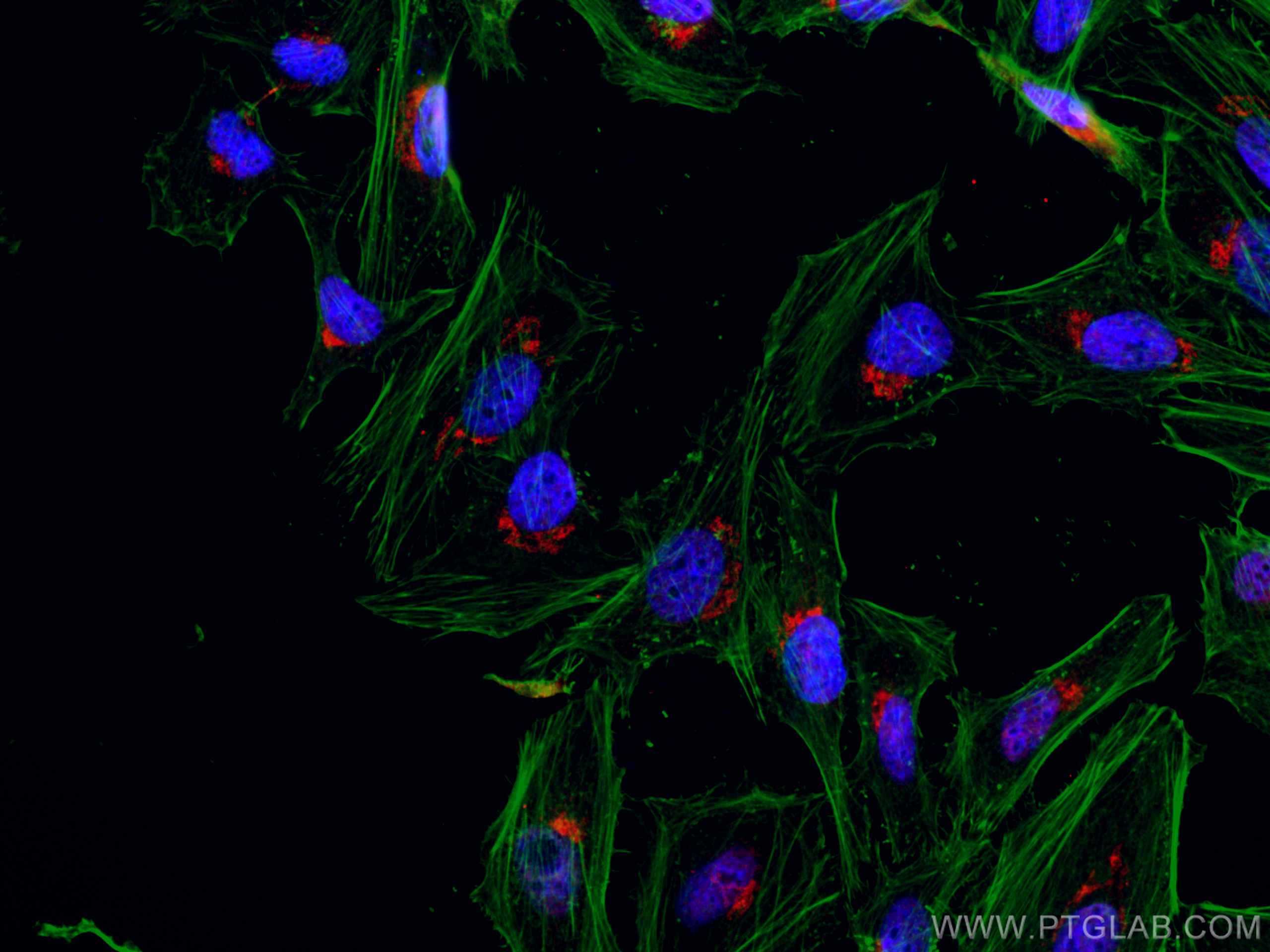 The GOLPH3 antibody from Proteintech is a mouse monoclonal antibody to a recombinant protein of human GOLPH3. This antibody recognizes human, mouse, rat antigen. The GOLPH3 antibody has been validated for the following applications: IF/ICC analysis. This antibody is coraliteR594.