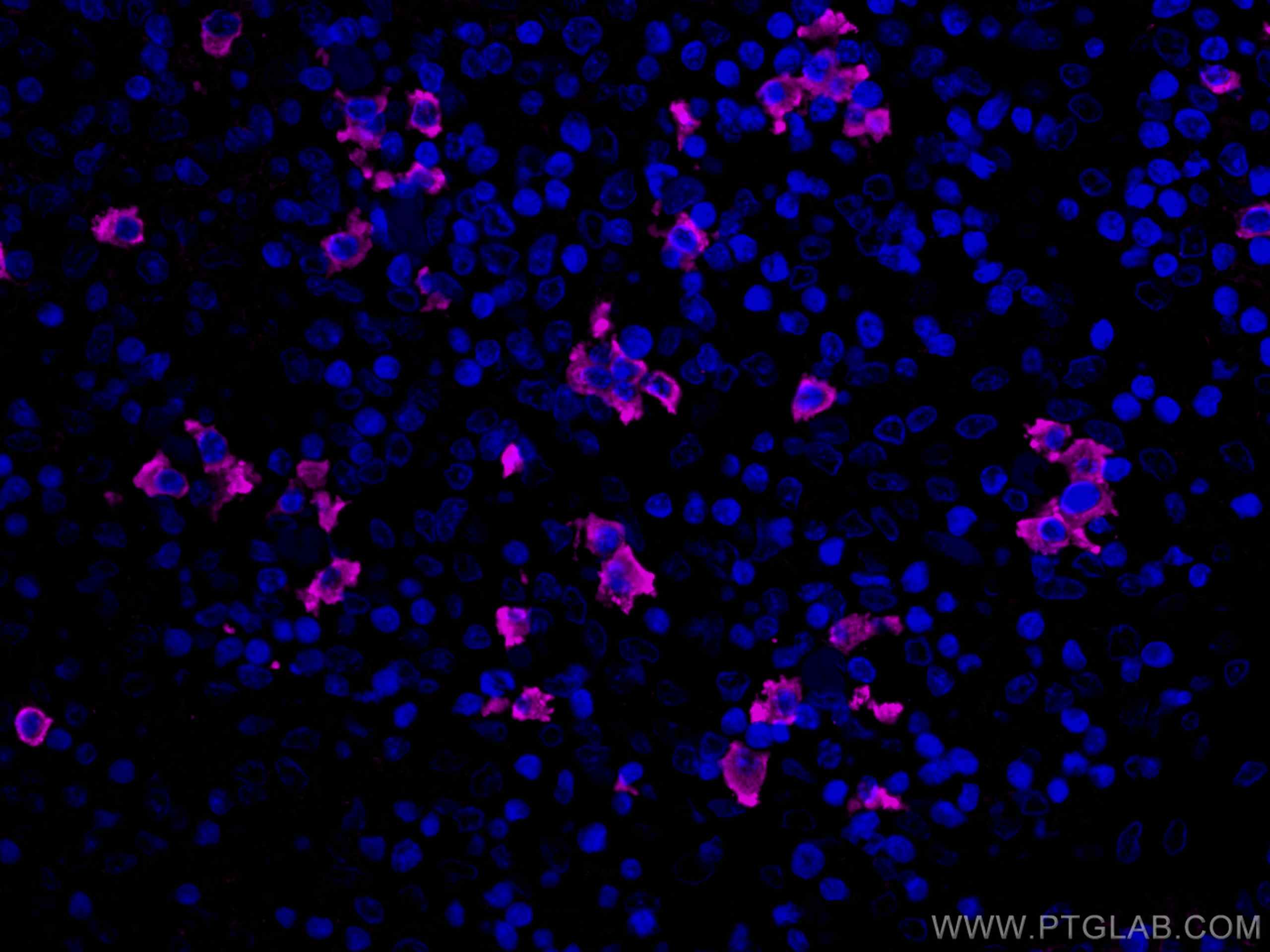 The Human Ig lambda chain antibody from Proteintech is a mouse monoclonal antibody to a recombinant protein of human Human Ig lambda chain. This antibody recognizes human antigen. The Human Ig lambda chain antibody has been validated for the following applications: IF-P analysis. This antibody is coraliteR plus 647.