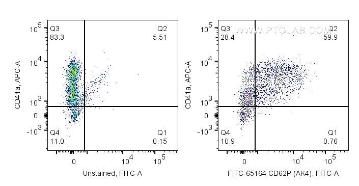 The CD62P antibody from Proteintech is a mouse monoclonal antibody to a human platelets of human CD62P. This antibody recognizes human, non-human primates antigen. The CD62P antibody has been validated for the following applications: FC analysis. This antibody is fitc plus.