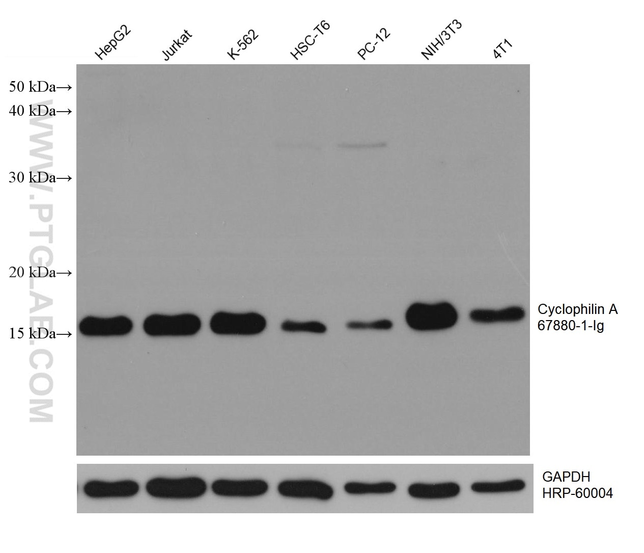 The Cyclophilin A antibody from Proteintech is a mouse monoclonal antibody to a recombinant protein of human Cyclophilin A. This antibody recognizes human, mouse, rat antigen. The Cyclophilin A antibody has been validated for the following applications: WB, IF/ICC, FC (Intra), ELISA analysis.