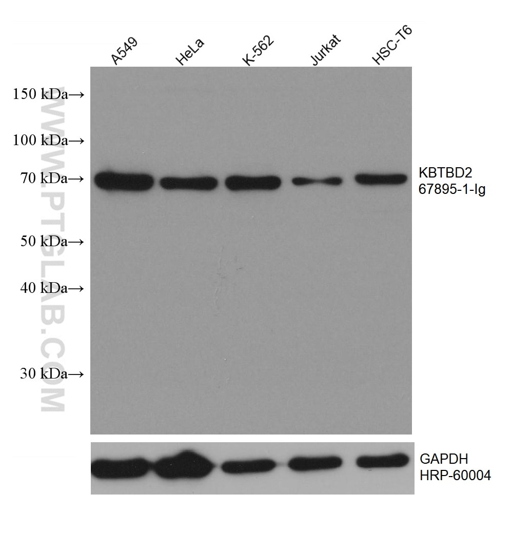 The KBTBD2 antibody from Proteintech is a mouse monoclonal antibody to a recombinant protein of human KBTBD2. This antibody recognizes human, mouse, rat antigen. The KBTBD2 antibody has been validated for the following applications: WB, IF/ICC, ELISA analysis.