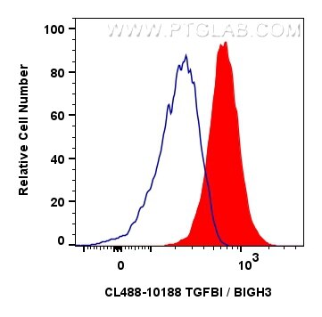 The TGFBI / BIGH3 antibody from Proteintech is a rabbit polyclonal antibody to a recombinant protein of human TGFBI / BIGH3. This antibody recognizes human, mouse, rat antigen. The TGFBI / BIGH3 antibody has been validated for the following applications: FC (Intra) analysis. This antibody is coraliteR plus 488.