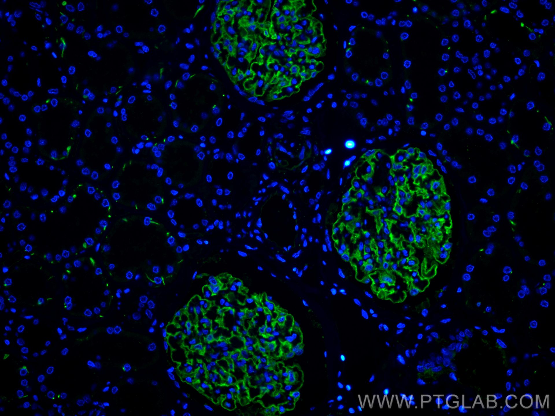 The Podocalyxin antibody from Proteintech is a rabbit polyclonal antibody to a recombinant protein of human Podocalyxin. This antibody recognizes human antigen. The Podocalyxin antibody has been validated for the following applications: IF-P analysis. This antibody is coraliteR plus 488.