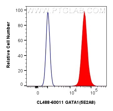 The GATA1 antibody from Proteintech is a mouse monoclonal antibody to a recombinant protein of human GATA1. This antibody recognizes human, mouse, rat, pig antigen. The GATA1 antibody has been validated for the following applications: FC (Intra) analysis. This antibody is coraliteR plus 488.
