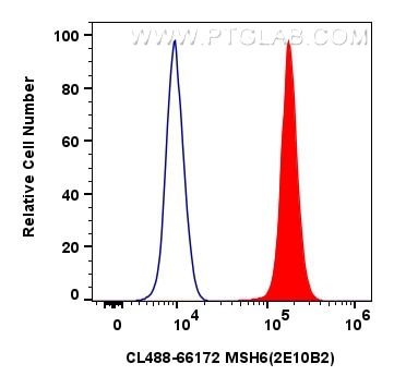 The MSH6 antibody from Proteintech is a mouse monoclonal antibody to a recombinant protein of human MSH6. This antibody recognizes human antigen. The MSH6 antibody has been validated for the following applications: FC (Intra) analysis. This antibody is coraliteR488.