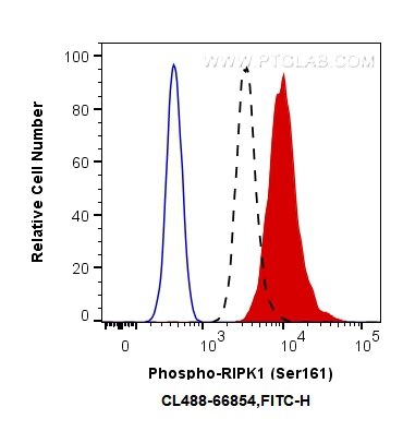 The Phospho-RIPK1 (Ser161) antibody from Proteintech is a mouse monoclonal antibody to a peptide of human Phospho-RIPK1 (Ser161) . This antibody recognizes human antigen. The Phospho-RIPK1 (Ser161) antibody has been validated for the following applications: IF/ICC, FC (Intra) analysis. This antibody is coraliteR plus 488.