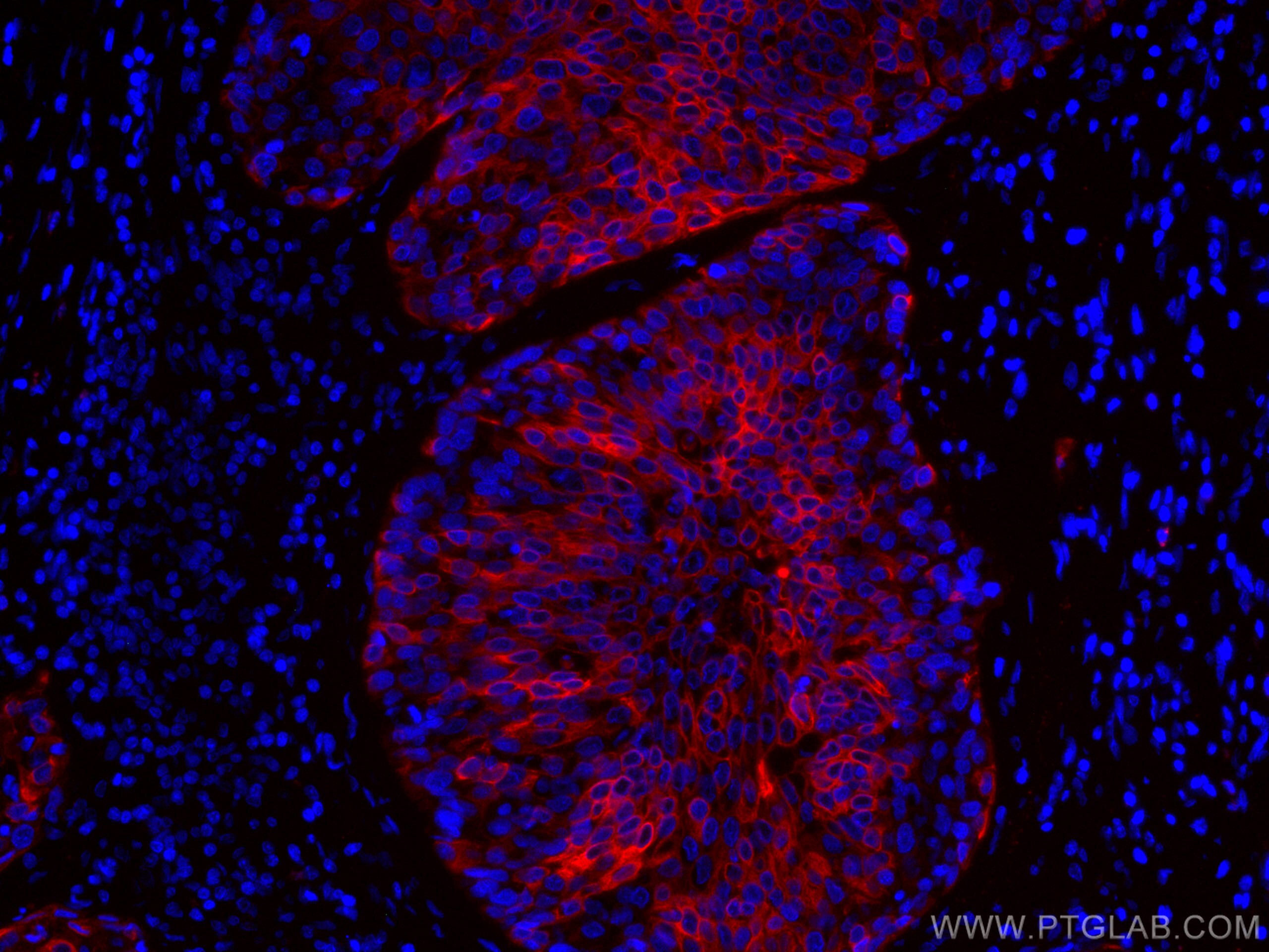 The Cytokeratin 5 antibody from Proteintech is a mouse monoclonal antibody to a recombinant protein of human Cytokeratin 5. This antibody recognizes human, mouse, pig antigen. The Cytokeratin 5 antibody has been validated for the following applications: IF-P analysis. This antibody is coraliteR594.