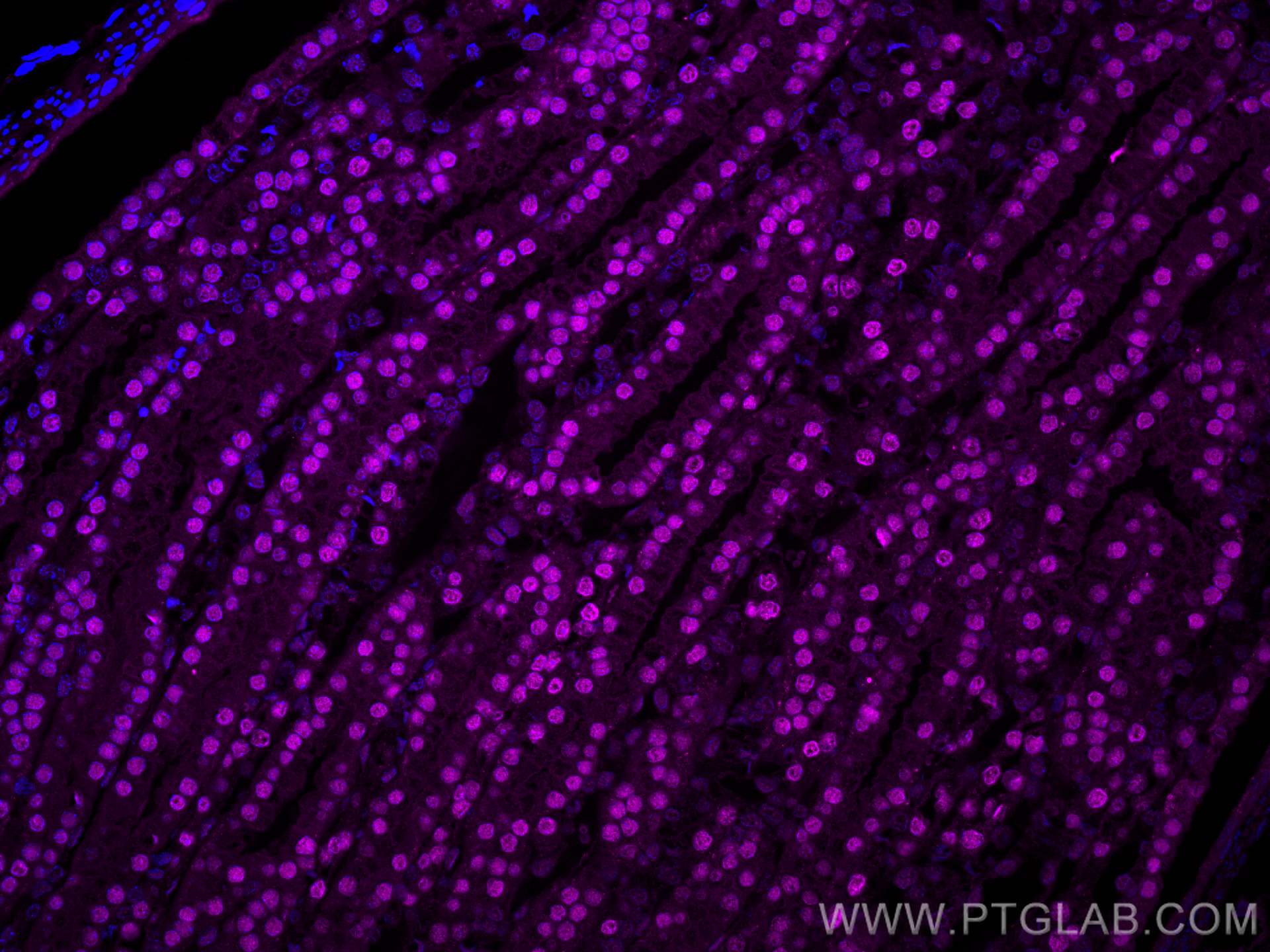 The PAX8 antibody from Proteintech is a rabbit polyclonal antibody to a recombinant protein of human PAX8. This antibody recognizes human, mouse, rat antigen. The PAX8 antibody has been validated for the following applications: IF/ICC, IF-P analysis. This antibody is coraliteR plus 647.
