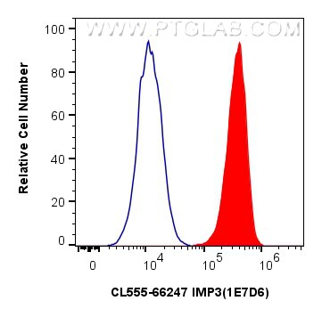 The IMP3 antibody from Proteintech is a mouse monoclonal antibody to a recombinant protein of human IMP3. This antibody recognizes human, mouse antigen. The IMP3 antibody has been validated for the following applications: FC (Intra) analysis. This antibody is coraliteR555.