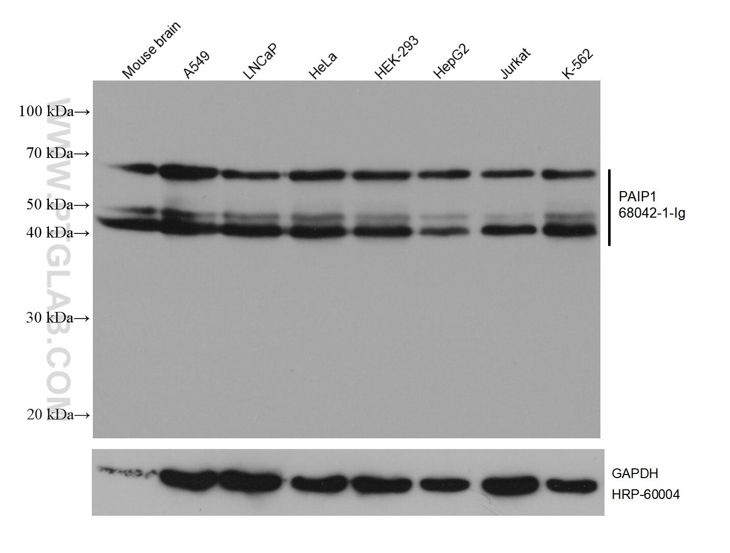 The PAIP1 antibody from Proteintech is a mouse monoclonal antibody to a recombinant protein of human PAIP1. This antibody recognizes human, mouse, rabbit antigen. The PAIP1 antibody has been validated for the following applications: WB, IHC, ELISA analysis.