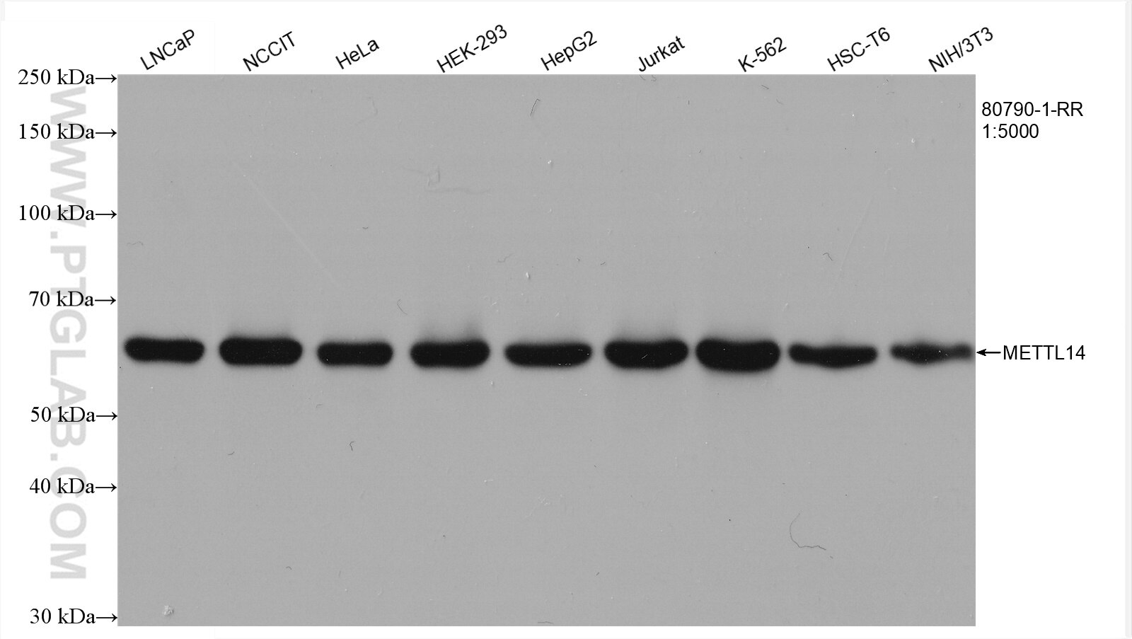 The METTL14 antibody from Proteintech is a rabbit recombinant antibody to a recombinant protein of human METTL14. This antibody recognizes human, mouse, rat antigen. The METTL14 antibody has been validated for the following applications: WB, IHC, ELISA analysis.
