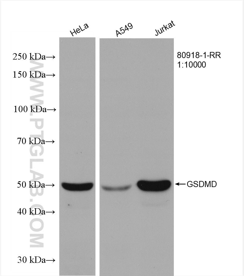 The GSDMD antibody from Proteintech is a rabbit recombinant antibody to a recombinant protein of human GSDMD. This antibody recognizes human, mouse antigen. The GSDMD antibody has been validated for the following applications: WB, FC (Intra), ELISA analysis.