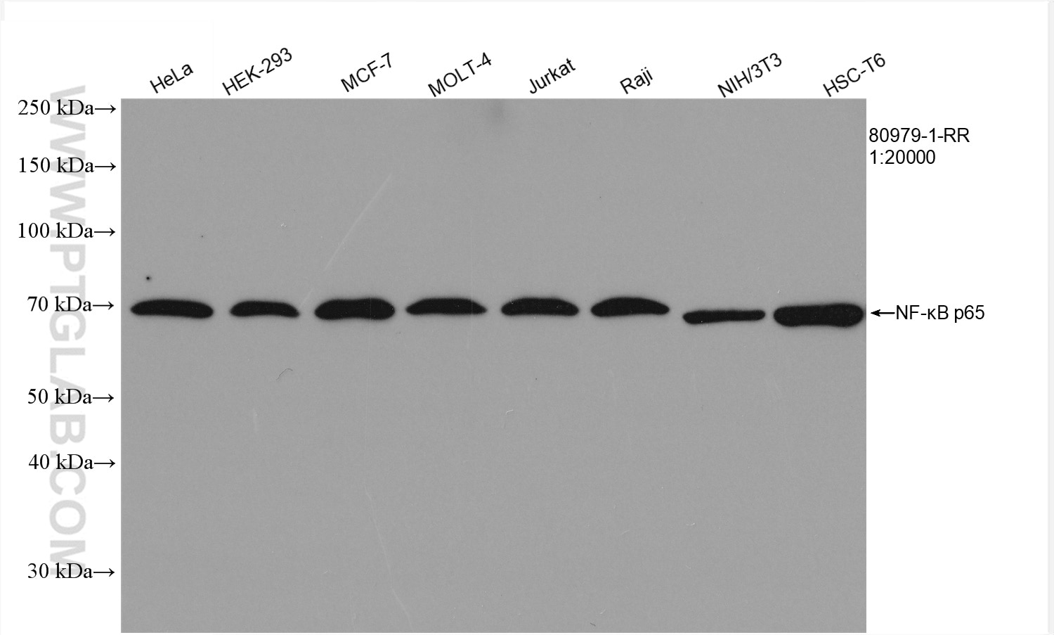 The NF-κB p65 antibody from Proteintech is a rabbit recombinant antibody to a recombinant protein of human NF-κB p65. This antibody recognizes human, mouse, rat antigen. The NF-κB p65 antibody has been validated for the following applications: WB, IF/ICC, FC (Intra), IP, ChIP, ELISA analysis.