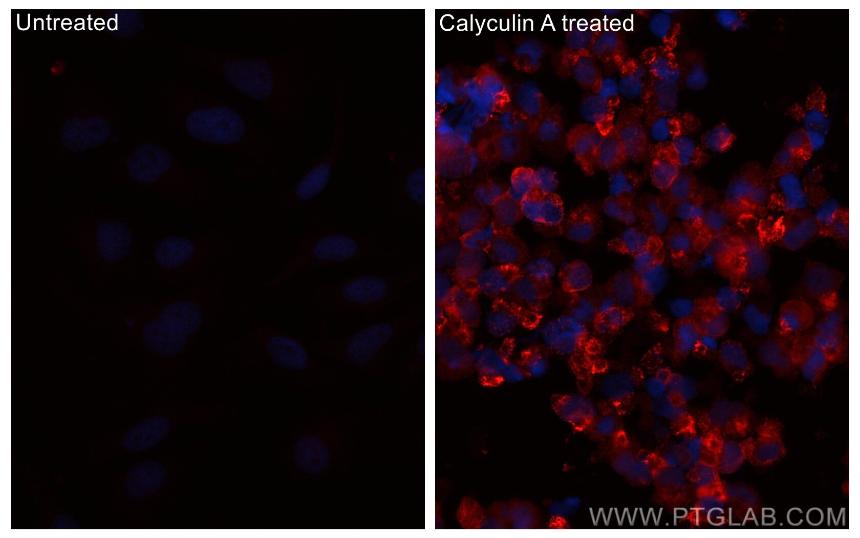 The Phospho-AKT1 (Ser473) antibody from Proteintech is a rabbit recombinant antibody to a peptide of human Phospho-AKT1 (Ser473). This antibody recognizes human, mouse antigen. The Phospho-AKT1 (Ser473) antibody has been validated for the following applications: IF/ICC, FC (Intra) analysis. This antibody is coraliteR594.