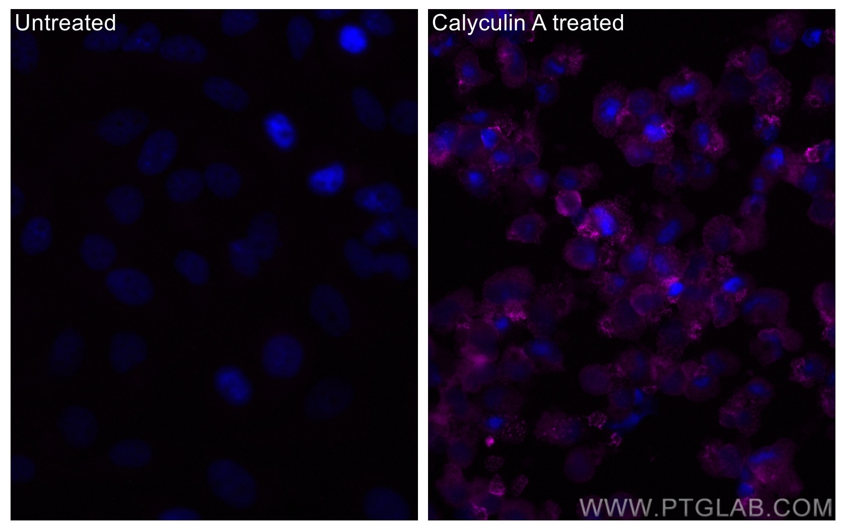 The Phospho-AKT1 (Ser473) antibody from Proteintech is a rabbit recombinant antibody to a peptide of human Phospho-AKT1 (Ser473). This antibody recognizes human, mouse antigen. The Phospho-AKT1 (Ser473) antibody has been validated for the following applications: IF/ICC, FC (Intra) analysis. This antibody is coraliteR plus 647.