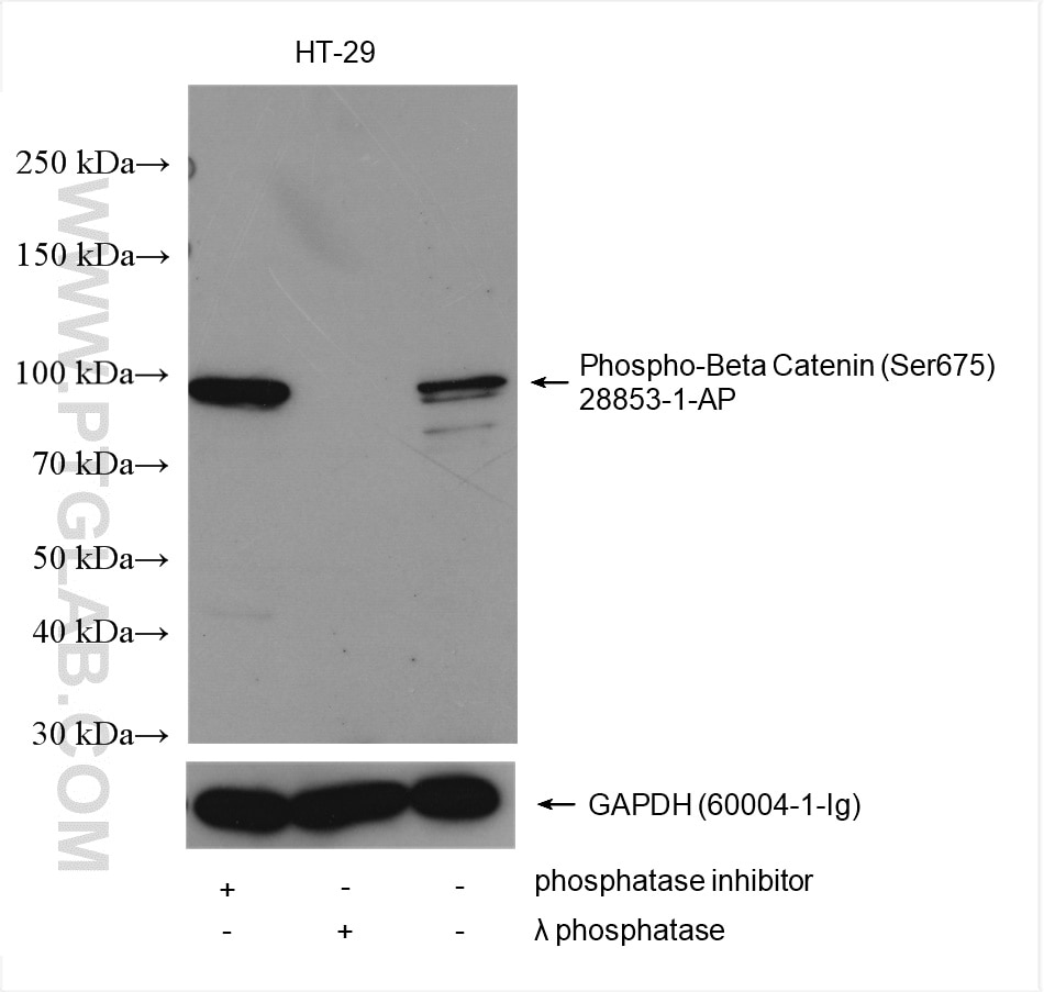 The Phospho-Beta Catenin (Ser675) antibody from Proteintech is a rabbit polyclonal antibody to a peptide of human Phospho-Beta Catenin (Ser675). This antibody recognizes human antigen. The Phospho-Beta Catenin (Ser675) antibody has been validated for the following applications: WB, IF/ICC, ELISA analysis.