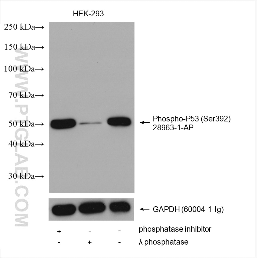 The Phospho-P53 (Ser392) antibody from Proteintech is a rabbit polyclonal antibody to a peptide of human Phospho-P53 (Ser392). This antibody recognizes human antigen. The Phospho-P53 (Ser392) antibody has been validated for the following applications: WB, ELISA analysis.