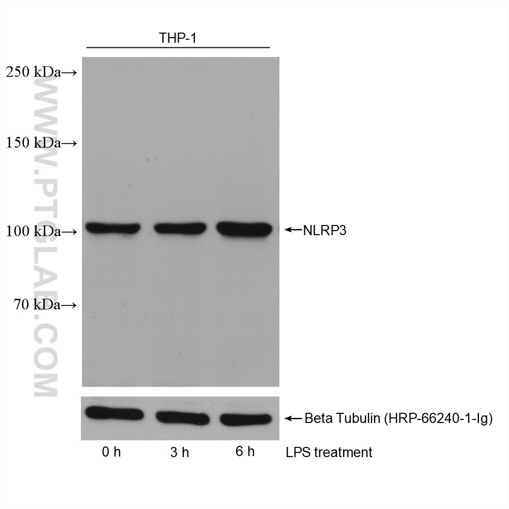 The NLRP3 antibody from Proteintech is a mouse monoclonal antibody to a recombinant protein of human NLRP3. This antibody recognizes human antigen. The NLRP3 antibody has been validated for the following applications: WB, IHC, ELISA analysis.