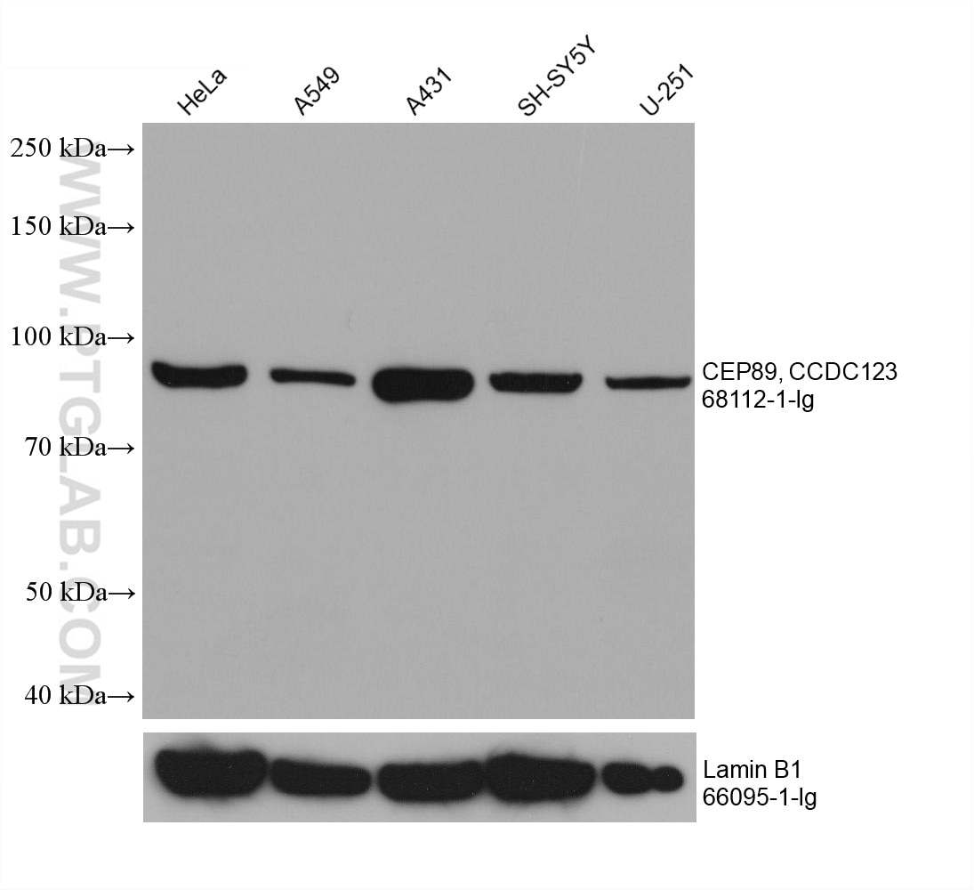 The CEP89, CCDC123 antibody from Proteintech is a mouse monoclonal antibody to a recombinant protein of human CEP89, CCDC123. This antibody recognizes human, mouse antigen. The CEP89, CCDC123 antibody has been validated for the following applications: WB, IF-P, ELISA analysis.