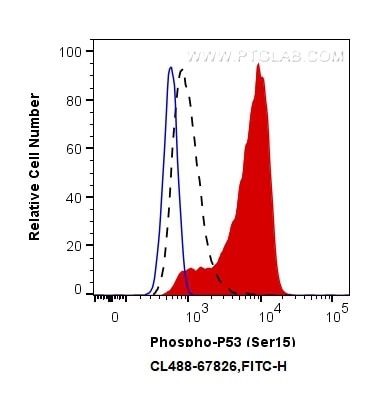 The Phospho-P53 (Ser15) antibody from Proteintech is a mouse monoclonal antibody to a peptide of human Phospho-P53 (Ser15). This antibody recognizes human antigen. The Phospho-P53 (Ser15) antibody has been validated for the following applications: FC (Intra) analysis. This antibody is coraliteR plus 488.