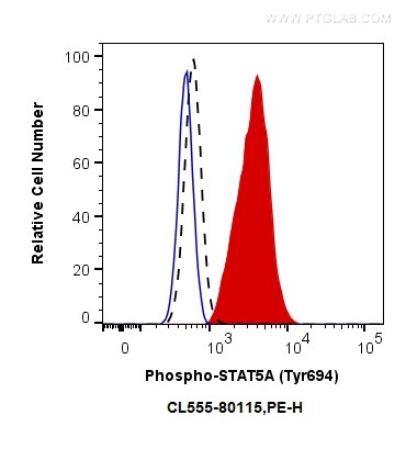 The Phospho-STAT5A (Tyr694)/STAT5B (Tyr699) antibody from Proteintech is a rabbit recombinant antibody to a peptide of human Phospho-STAT5A (Tyr694)/STAT5B (Tyr699). This antibody recognizes human antigen. The Phospho-STAT5A (Tyr694)/STAT5B (Tyr699) antibody has been validated for the following applications: FC (Intra) analysis. This antibody is coraliteR555.