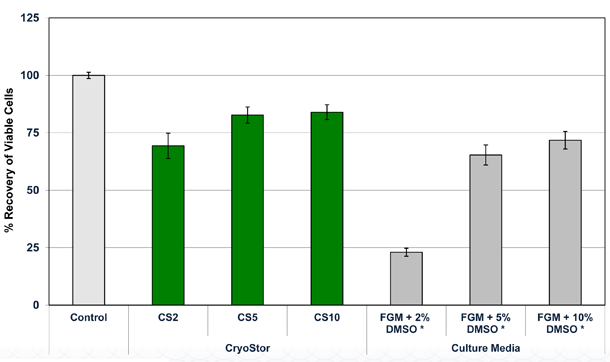 Pre-formulated with 10% DMSO, CryoStor CS10 has demonstrated remarkable biopreservation efficacy in numerous cell types, including sensitive cells such as hepatocytes.