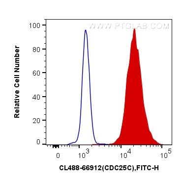 The CDC25C antibody from Proteintech is a mouse monoclonal antibody to a recombinant protein of human CDC25C. This antibody recognizes human, mouse, rat antigen. The CDC25C antibody has been validated for the following applications: FC (Intra) analysis. This antibody is coraliteR plus 488.