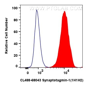 The Synaptotagmin-1 antibody from Proteintech is a mouse monoclonal antibody to a recombinant protein of human Synaptotagmin-1. This antibody recognizes human, mouse, rat, pig, rabbit, chicken antigen. The Synaptotagmin-1 antibody has been validated for the following applications: FC (Intra) analysis. This antibody is coraliteR plus 488.