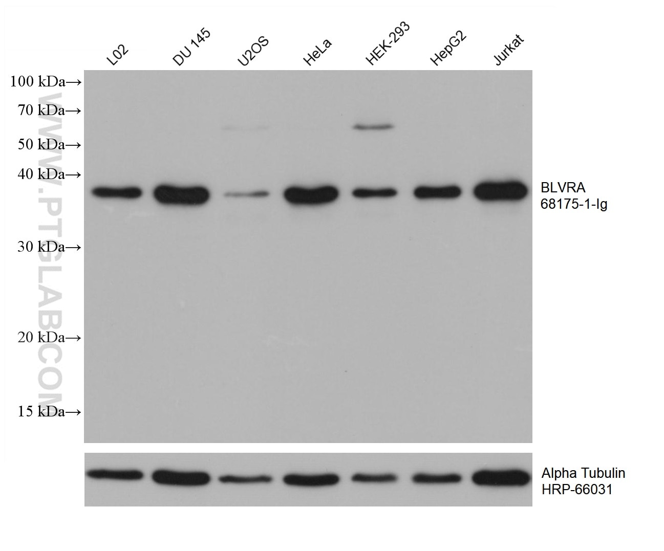 The BLVRA antibody from Proteintech is a mouse monoclonal antibody to a recombinant protein of human BLVRA. This antibody recognizes human antigen. The BLVRA antibody has been validated for the following applications: WB, IF/ICC, ELISA analysis.