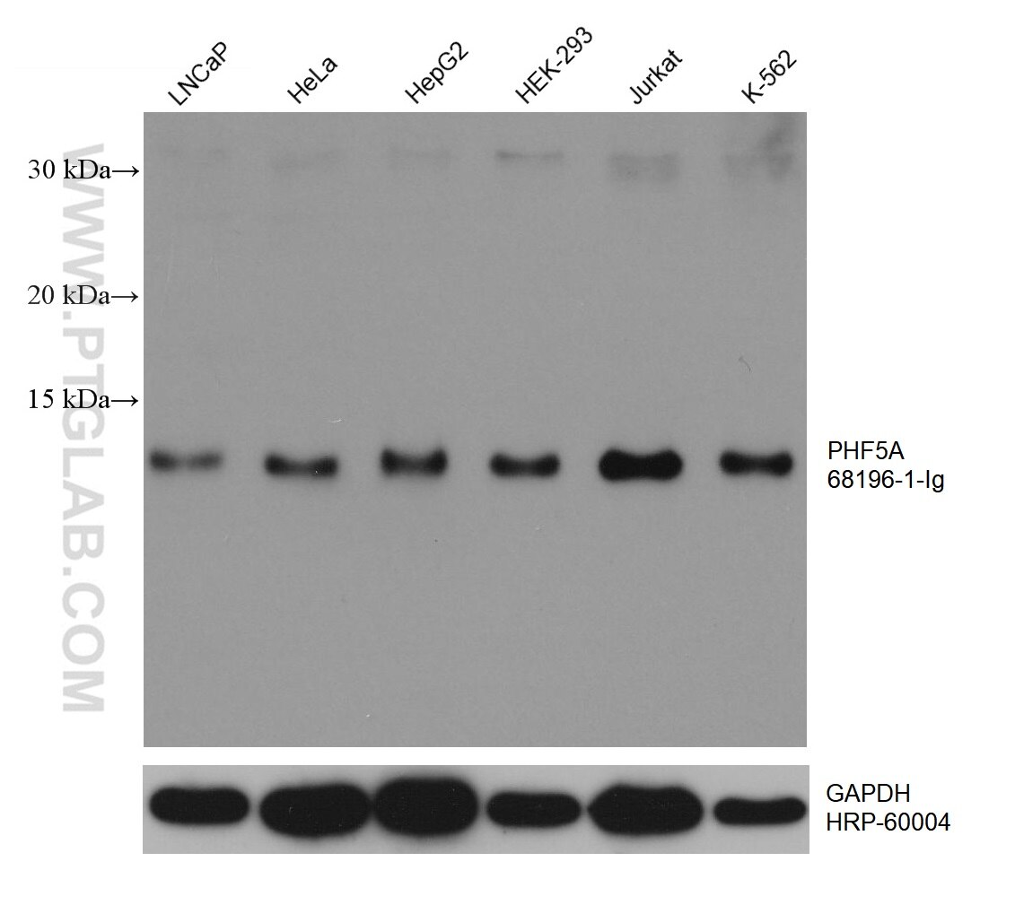 The PHF5A antibody from Proteintech is a mouse monoclonal antibody to a recombinant protein of human PHF5A. This antibody recognizes human, mouse antigen. The PHF5A antibody has been validated for the following applications: WB, ELISA analysis.