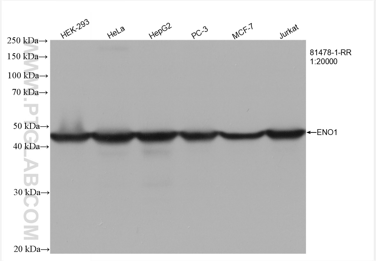 The ENO1 antibody from Proteintech is a rabbit recombinant antibody to a recombinant protein of human ENO1. This antibody recognizes human, mouse, rat, pig antigen. The ENO1 antibody has been validated for the following applications: WB, IHC, IF/ICC, ELISA analysis.
