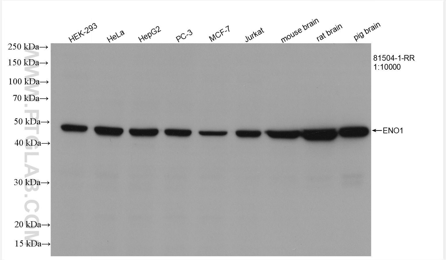 The ENO1/2/3 antibody from Proteintech is a rabbit recombinant antibody to a recombinant protein of human ENO1/2/3. This antibody recognizes human, mouse, rat, pig antigen. The ENO1/2/3 antibody has been validated for the following applications: WB, IHC, IF/ICC, ELISA analysis.