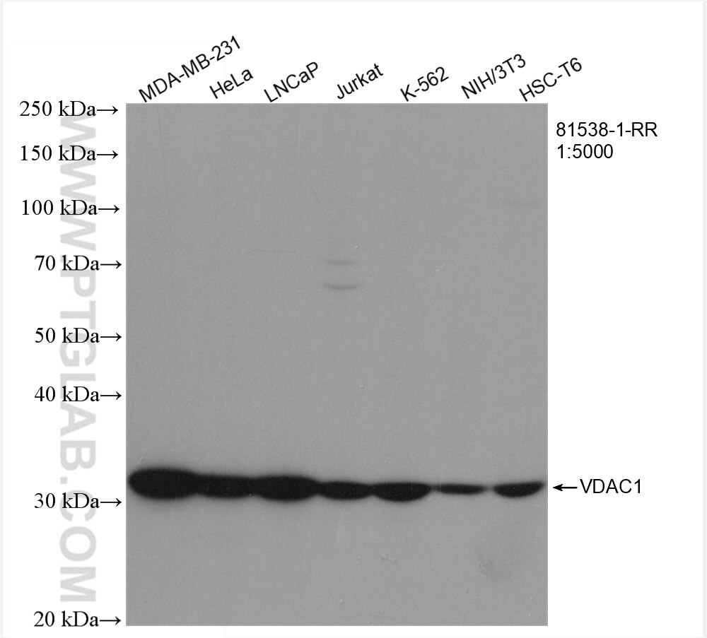 概要 The VDAC1/Porin antibody from Proteintech is a rabbit recombinant antibody to a peptide of human VDAC1/Porin. This antibody recognizes human, mouse, rat antigen. The VDAC1/Porin antibody has been validated for the following applications: WB, IHC, IF-P, FC (Intra), ELISA analysis.