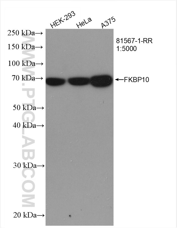 The FKBP10/FKBP65 antibody from Proteintech is a rabbit recombinant antibody to a recombinant protein of human FKBP10/FKBP65. This antibody recognizes human antigen. The FKBP10/FKBP65 antibody has been validated for the following applications: WB, IHC, ELISA analysis.