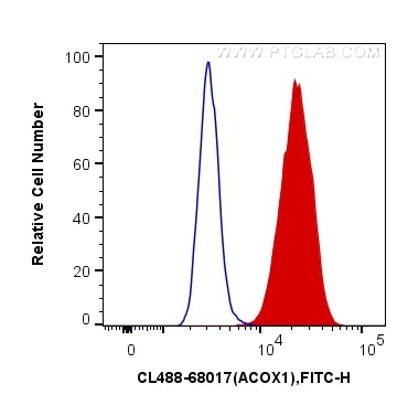The ACOX1 antibody from Proteintech is a mouse monoclonal antibody to a recombinant protein of human ACOX1. This antibody recognizes human, mouse, rat antigen. The ACOX1 antibody has been validated for the following applications: FC (Intra) analysis. This antibody is coraliteR plus 488.
