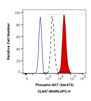 The Phospho-AKT (Ser473) antibody from Proteintech is a rabbit recombinant antibody to a peptide of human Phospho-AKT (Ser473). This antibody recognizes human antigen. The Phospho-AKT (Ser473) antibody has been validated for the following applications: FC (Intra) analysis. This antibody is coraliteR plus 647.