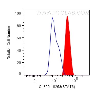 The STAT3 antibody from Proteintech is a rabbit polyclonal antibody to a recombinant protein of human STAT3. This antibody recognizes human, mouse, rat antigen. The STAT3 antibody has been validated for the following applications: FC (Intra) analysis. This antibody is coraliteR plus 647.