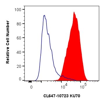 The KU70 antibody from Proteintech is a rabbit polyclonal antibody to a recombinant protein of human KU70. This antibody recognizes human, mouse, rat antigen. The KU70 antibody has been validated for the following applications: IF/ICC, FC (Intra) analysis. This antibody is coraliteR plus 647.