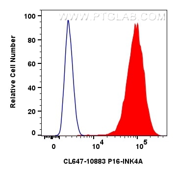 The P16-INK4A antibody from Proteintech is a rabbit polyclonal antibody to a recombinant protein of human P16-INK4A. This antibody recognizes human antigen. The P16-INK4A antibody has been validated for the following applications: FC (Intra) analysis. This antibody is coraliteR plus 647.
