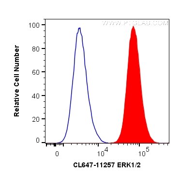 The ERK1/2 antibody from Proteintech is a rabbit polyclonal antibody to a recombinant protein of human ERK1/2. This antibody recognizes human, mouse antigen. The ERK1/2 antibody has been validated for the following applications: FC (Intra) analysis. This antibody is coraliteR plus 647.