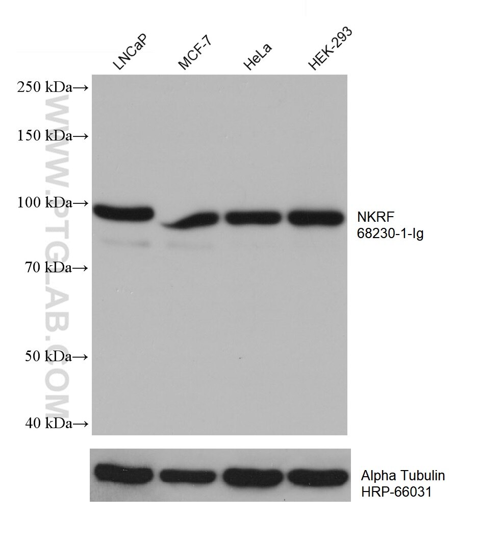 The NKRF antibody from Proteintech is a mouse monoclonal antibody to a recombinant protein of human NKRF. This antibody recognizes human, rat, mouse antigen. The NKRF antibody has been validated for the following applications: WB, ELISA analysis.