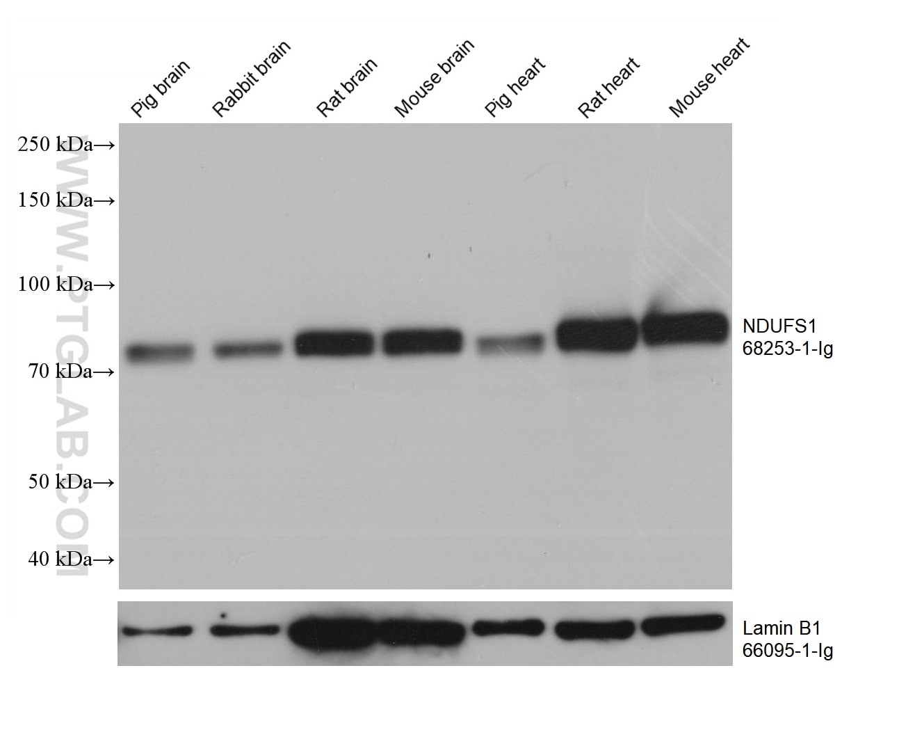 The NDUFS1 antibody from Proteintech is a mouse monoclonal antibody to a recombinant protein of human NDUFS1. This antibody recognizes human, mouse, rat, pig, rabbit antigen. The NDUFS1 antibody has been validated for the following applications: WB, IHC, IF/ICC, ELISA analysis.