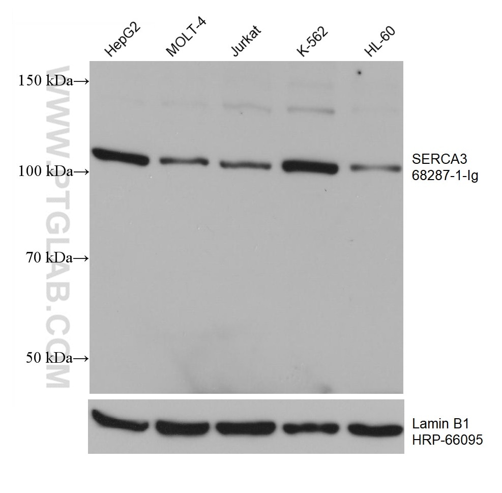 The SERCA3 antibody from Proteintech is a mouse monoclonal antibody to a recombinant protein of human SERCA3. This antibody recognizes human, mouse, rat antigen. The SERCA3 antibody has been validated for the following applications: WB, IF/ICC, ELISA analysis.