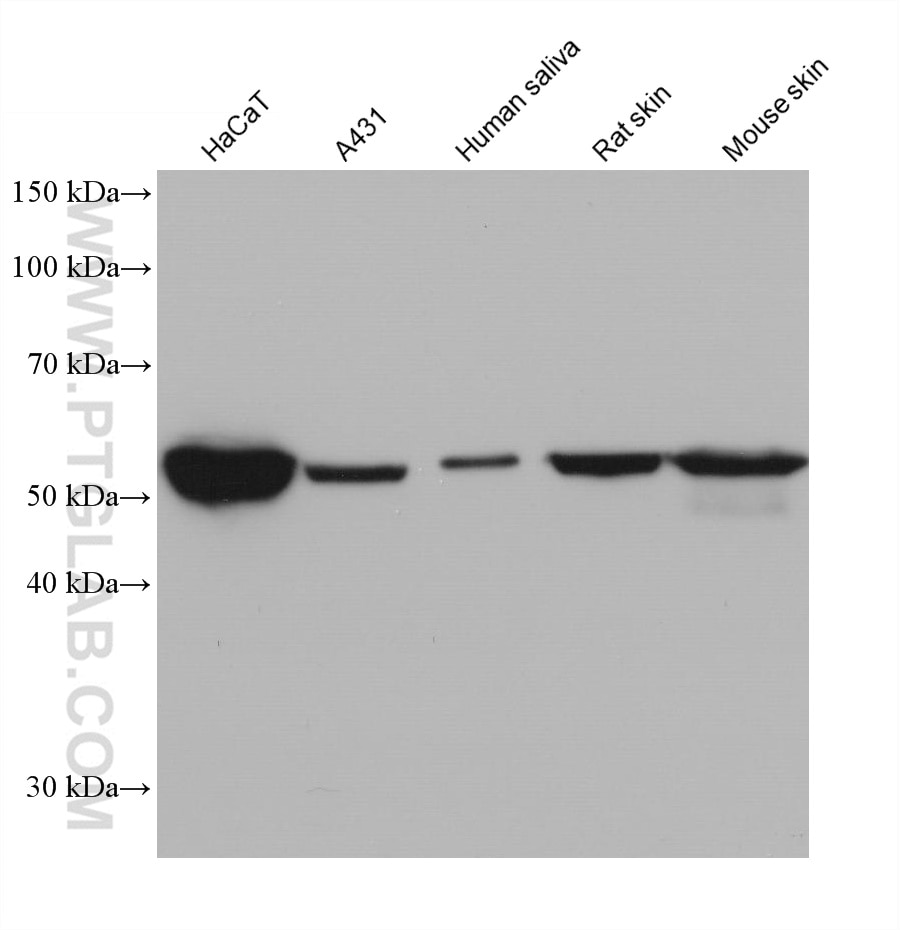 The Cytokeratin 6A antibody from Proteintech is a mouse monoclonal antibody to a recombinant protein of human Cytokeratin 6A. This antibody recognizes human, mouse, rat antigen. The Cytokeratin 6A antibody has been validated for the following applications: WB, IHC, ELISA analysis.