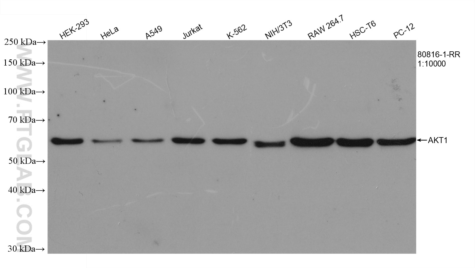 The AKT1-Specific antibody from Proteintech is a rabbit recombinant antibody to a recombinant protein of human AKT1-Specific. This antibody recognizes human, mouse, rat antigen. The AKT1-Specific antibody has been validated for the following applications: WB, IHC, FC (Intra), IP, ELISA analysis.